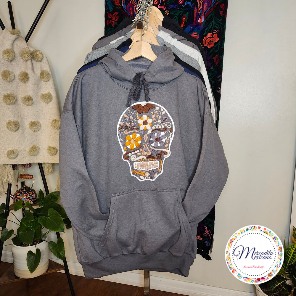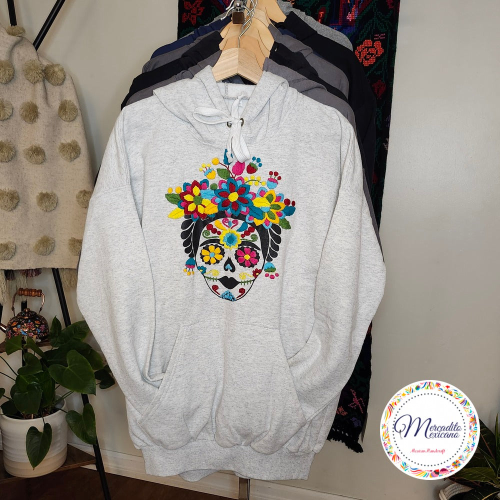 Comfortable Hoodies with embroidered flowers and the figure of a colourful skeleton head. The hoodie is plush, easy to wash and awesome for Halloween parties. These hoodies are limited edition, get them before they are gone!