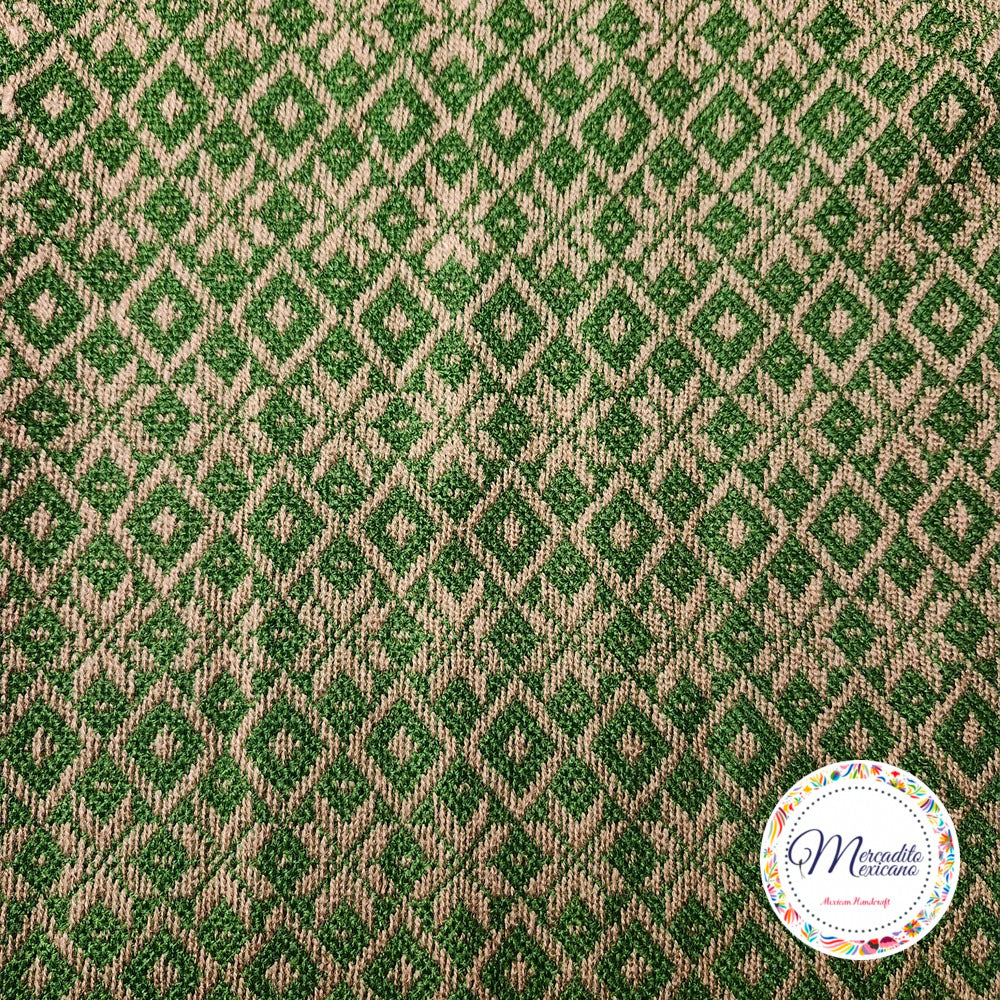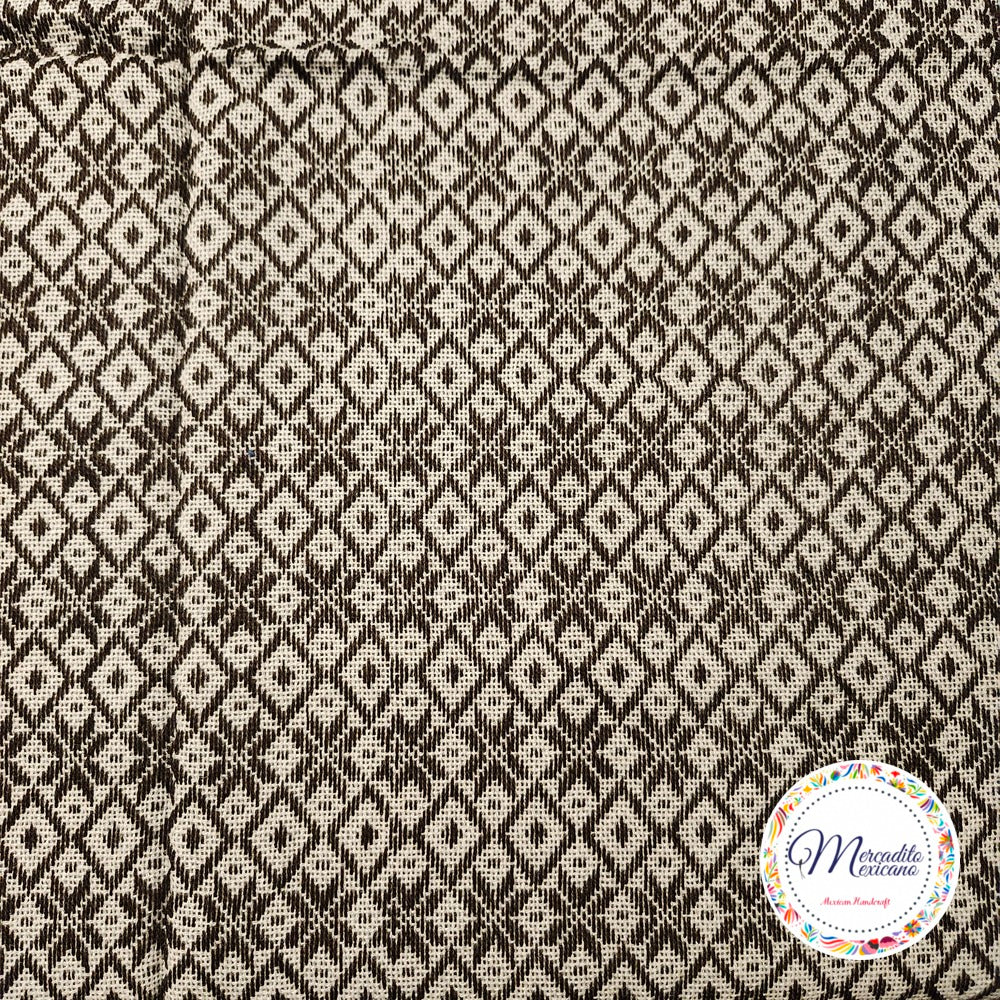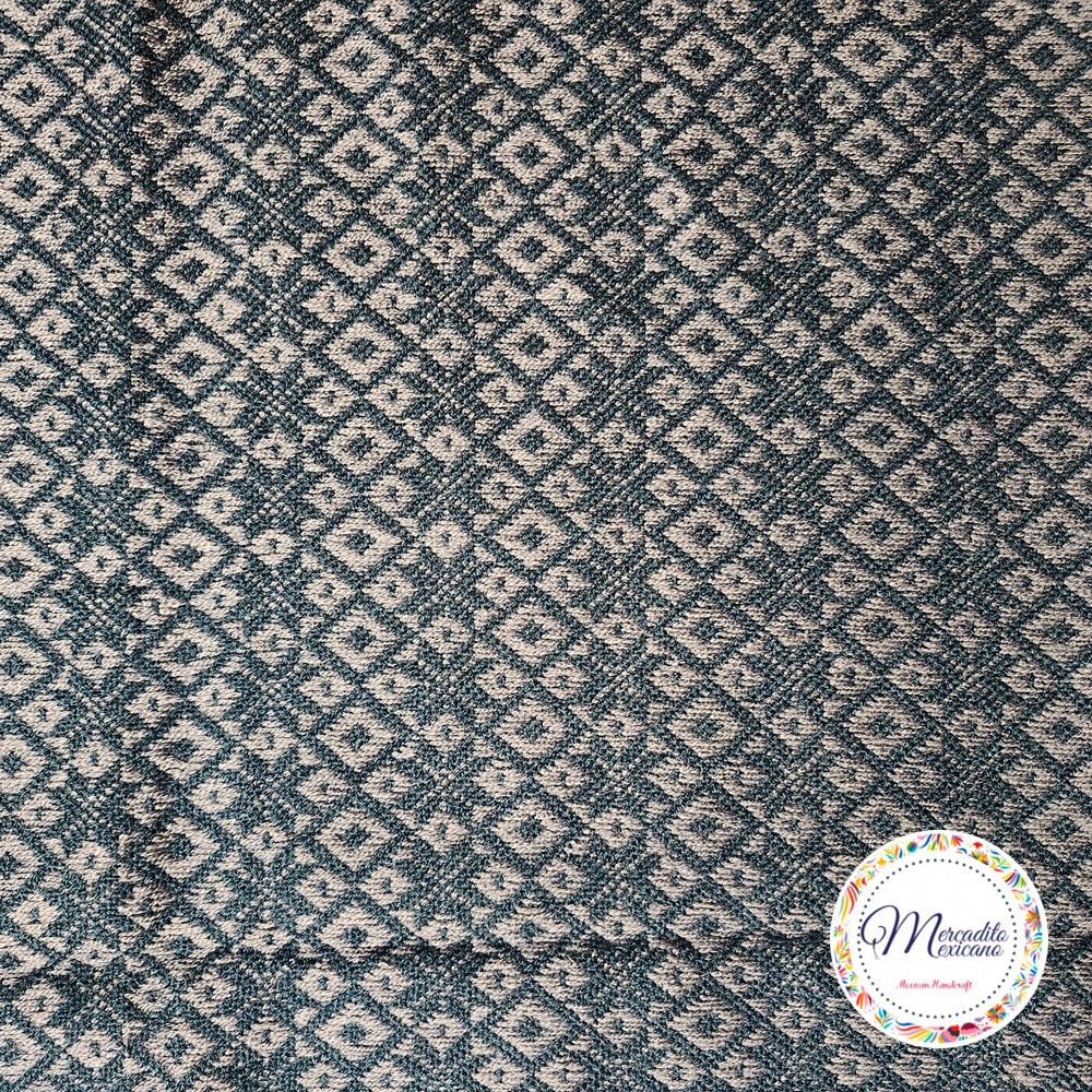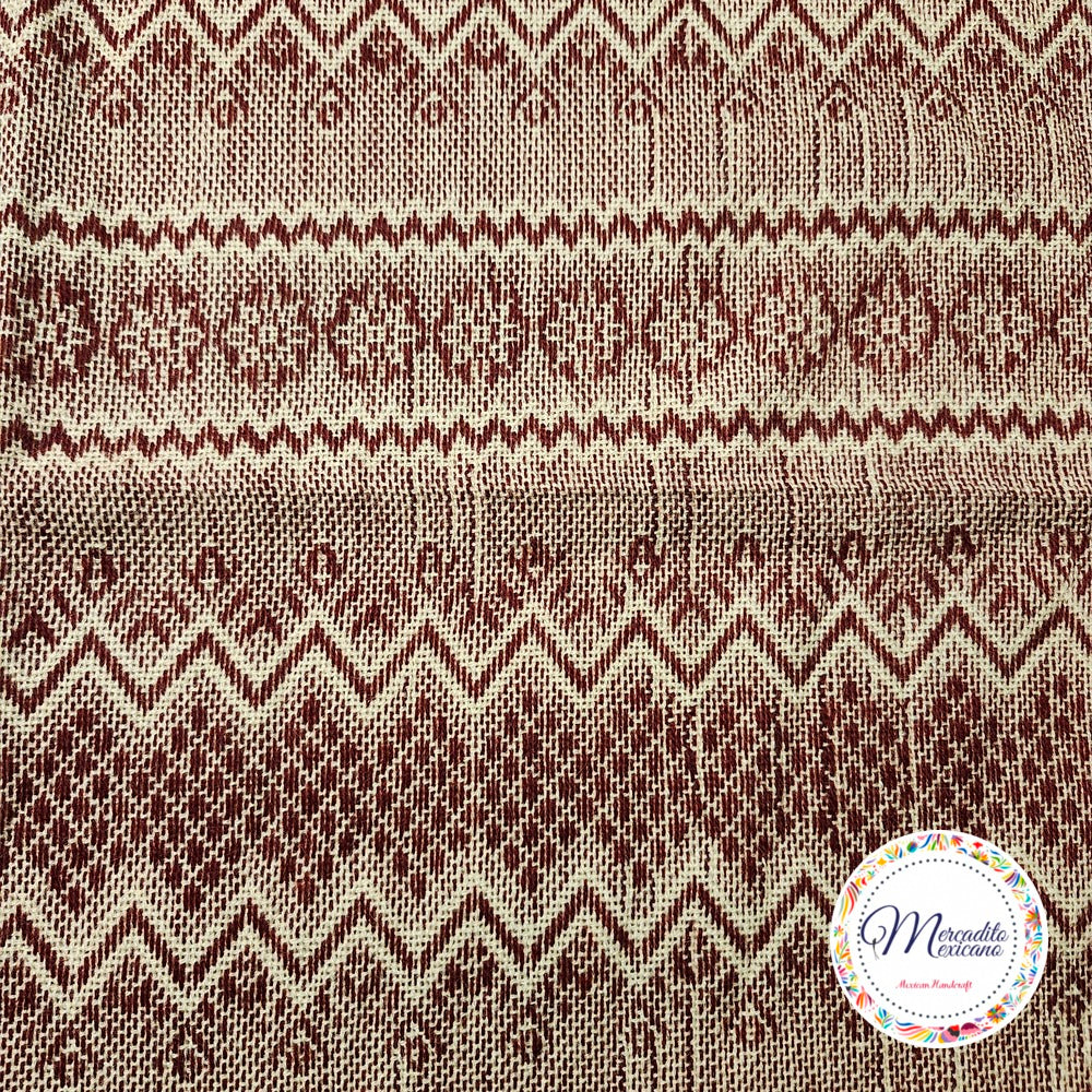 Typical Mexican rebozo, machine made with geometic printed polyester fabric. It embellished at the ends with braided bangs.